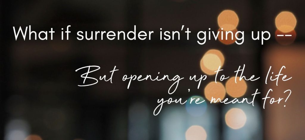 Surrender is not passivity. It’s about opening all the doors in your life. Opening the floodgates to creativity, peace, freedom. Synchronicity up the yin-yang. And a strength you want to know for the rest of your life.