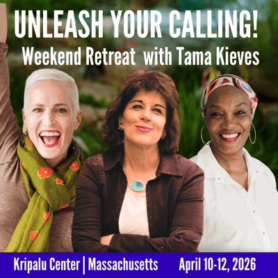 CREATE THE WORK + LIFE YOU LOVE. Join Tama at the world-class Kripalu Center in the beautiful and healing Berkshire mountains of MA on April 10-12. What life is calling to you right now? Your wildest dreams are not frivolous. They are the path to your greatest security. Learn how to live your calling: your expression of infinite gifts, stamina, and love. Optional support group follows.